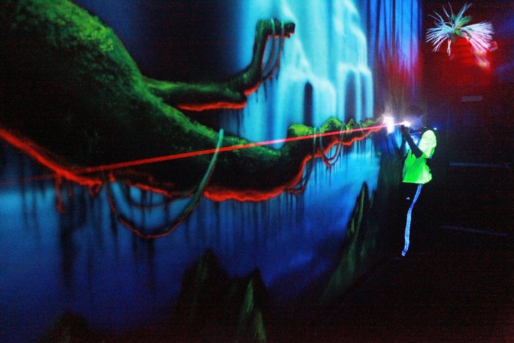 Our state-of-the-art laser tag arena can accommodate up to 50 players per game. The BSC laser tag experience will transport you to an exciting adventure in our multi-level urban jungle-themed blacklight arena, where your mission is to find your opponents and tag before they tag you! Our interactive viewing area is fun for siblings and parents too!