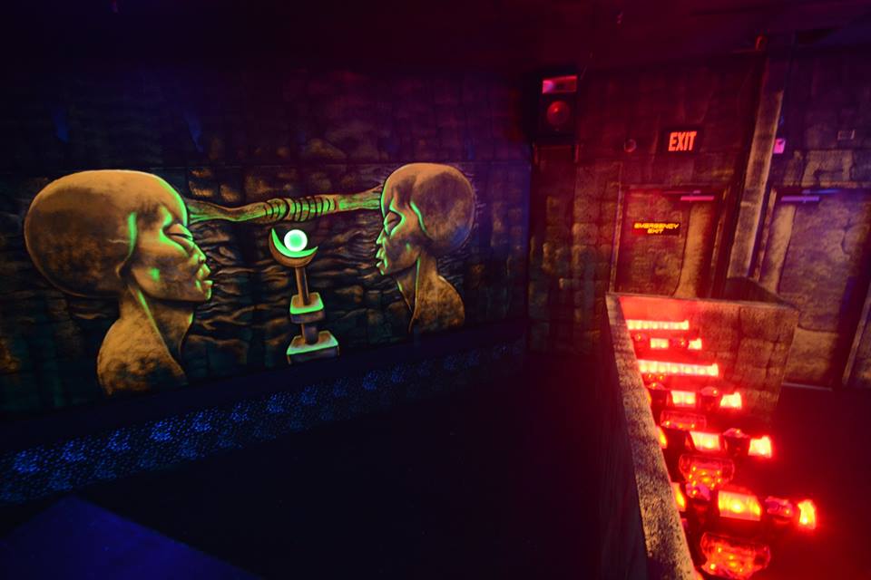 Come play this 10 minute game of non-stop action in a 4,000 square foot, black-lit, fog-filled, music-pumping arena. It is a digital battleground for everyone to enjoy. You will go head to head with another team as you crawl, hide, and navigate your way through the obstacle filled arena on your way to victory. Compare your stats after the game with your personalized score.