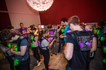 Der bahnbrechende Freizeitspaß aus Übersee hat endlich den Sprung über den großen Teich geschafft. Nun könnt auch Ihr die Verschmelzung von Live-Aktion und Computerspiel erleben. Mit einem “Phaser” und einer Weste ausgerüstet düst Ihr durch eine aufregende Arena. Sucht Deckung hinter Wänden, lauft über die Rampe und nutzt jede Nische um Euer Team zum Sieg zu führen.